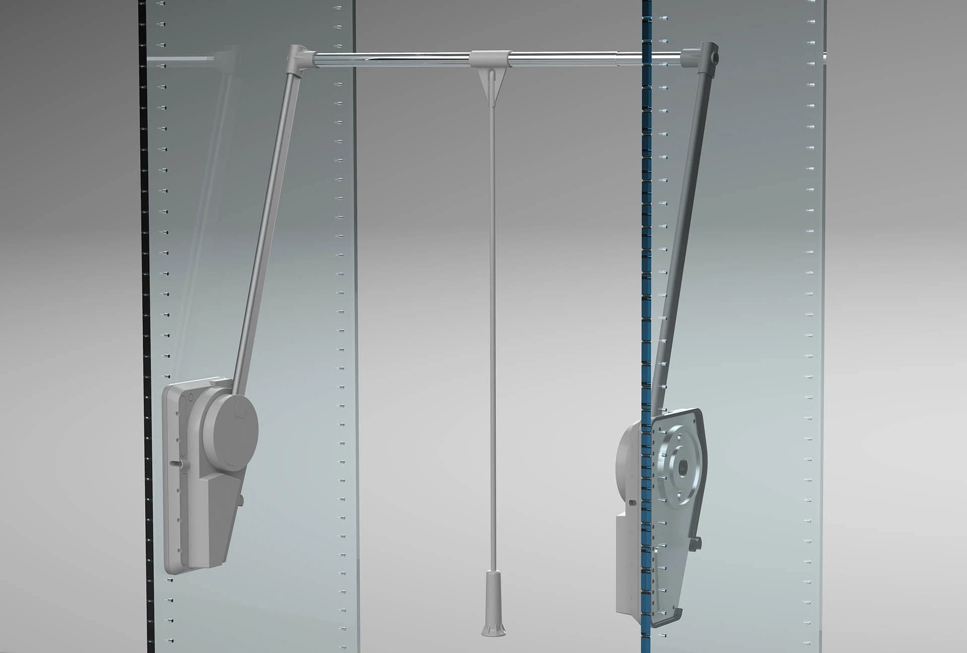 SUPERLIFT to jedyny na rynku mobilny wieszak (pantograf) z regulowaną siłą udźwigu, która wynosi aż do 20 kg. Możliwość zmiany nachylenia ramion pozwala na idealne dopasowanie mechanizmu do szaf o różnej głębokości. Estetyczna obudowa z tworzywa sztucznego osłania mechanizm wykonany w przeważającej mierze ze stali.