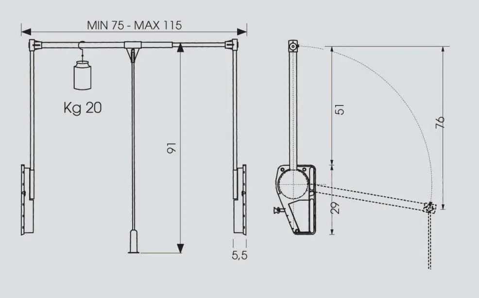 Pantograf do szafy udźwig do 20kg Ambos Superlift 75-115cm